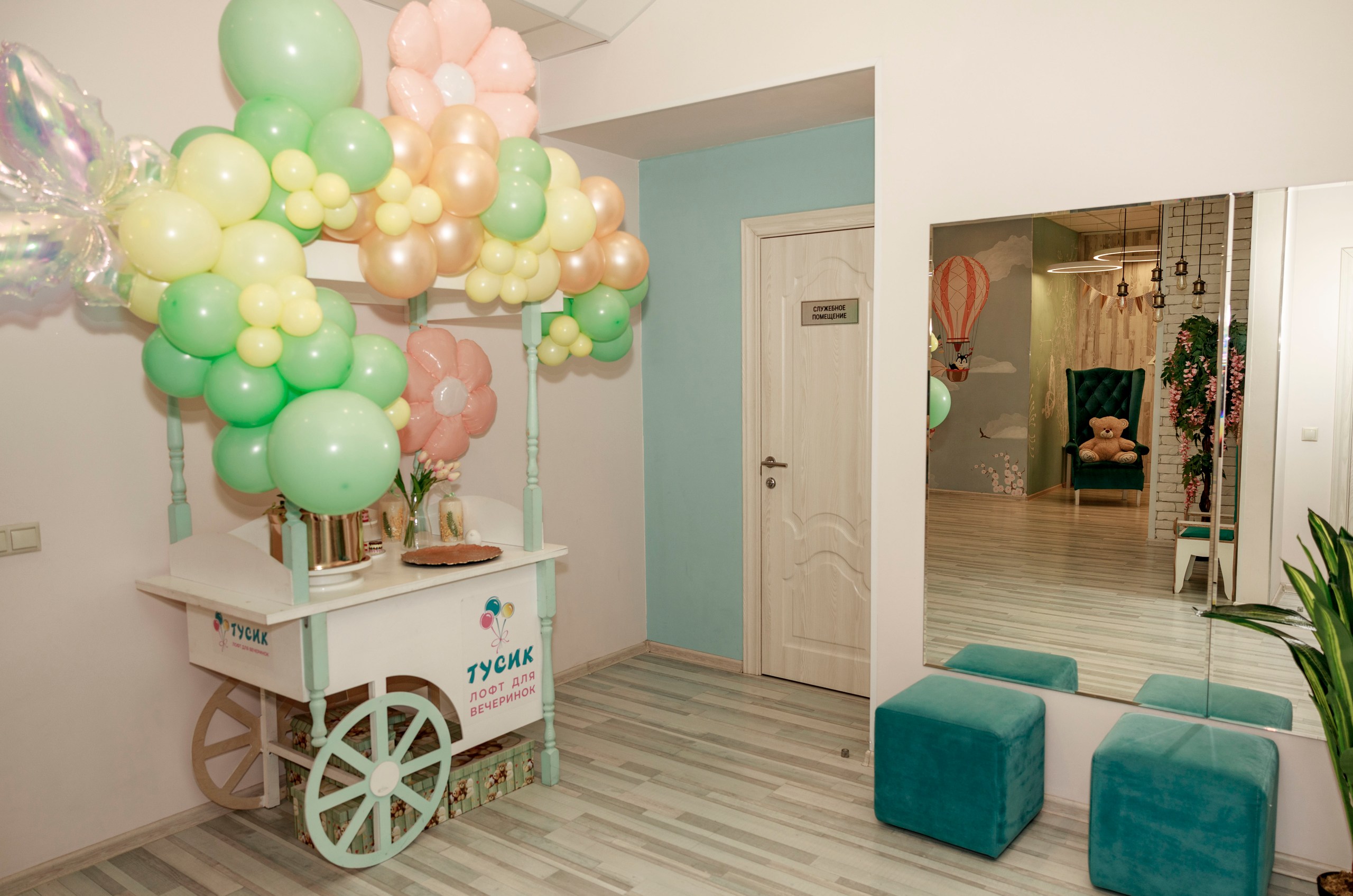 Мы предлагаем услуги аренды помещения и программы-развлечения на Ваш праздник! Мы проводим красочные и увлекательные шоу, организуем праздники под ключ. Представляем Вам уникальный с своей концепцией детский лофт Тусик. Пространство выполнено в бежево-мятных цветах, насыщенно зонами для красивых фотографий. Главная изюминка нашего лофта: это троны для именинников и всегда украшенная шарами кэнди-тележка для ваших сладостей, цветов и реквизита. Просторное помещение 100 кв. м. удачно зонировано: входная группа с гардеробной зоной; welcome-zone с зеркалами, пуфиками и кэнди-тележкой; отдельная кухня с огромным количеством банкетной и детской посуды, холодильником, свч, посудомоечной машиной пространством для сервировки; подсобное помещение; масштабная игровая зона, не менее 40 кв. м.; банкетная зона - детский и взрослый столы. Имеется большая, бесплатная удобная парковка Подробно можно посмотреть фотографии в разделе ФОТОГАЛЕРЕЯ/ИНТЕРЬЕР.