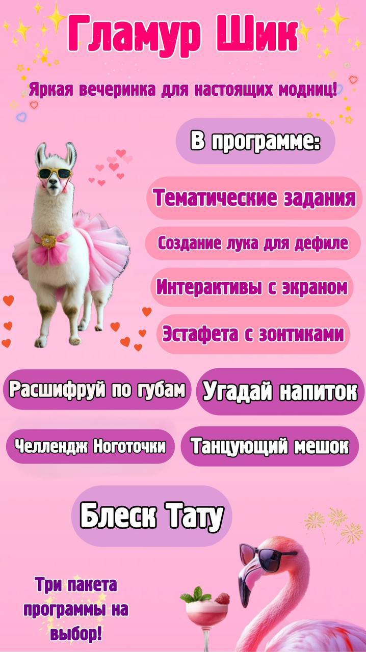 В стоимость пакета включен 1 аниматор. Второй аниматор +8000 руб./2 часа.